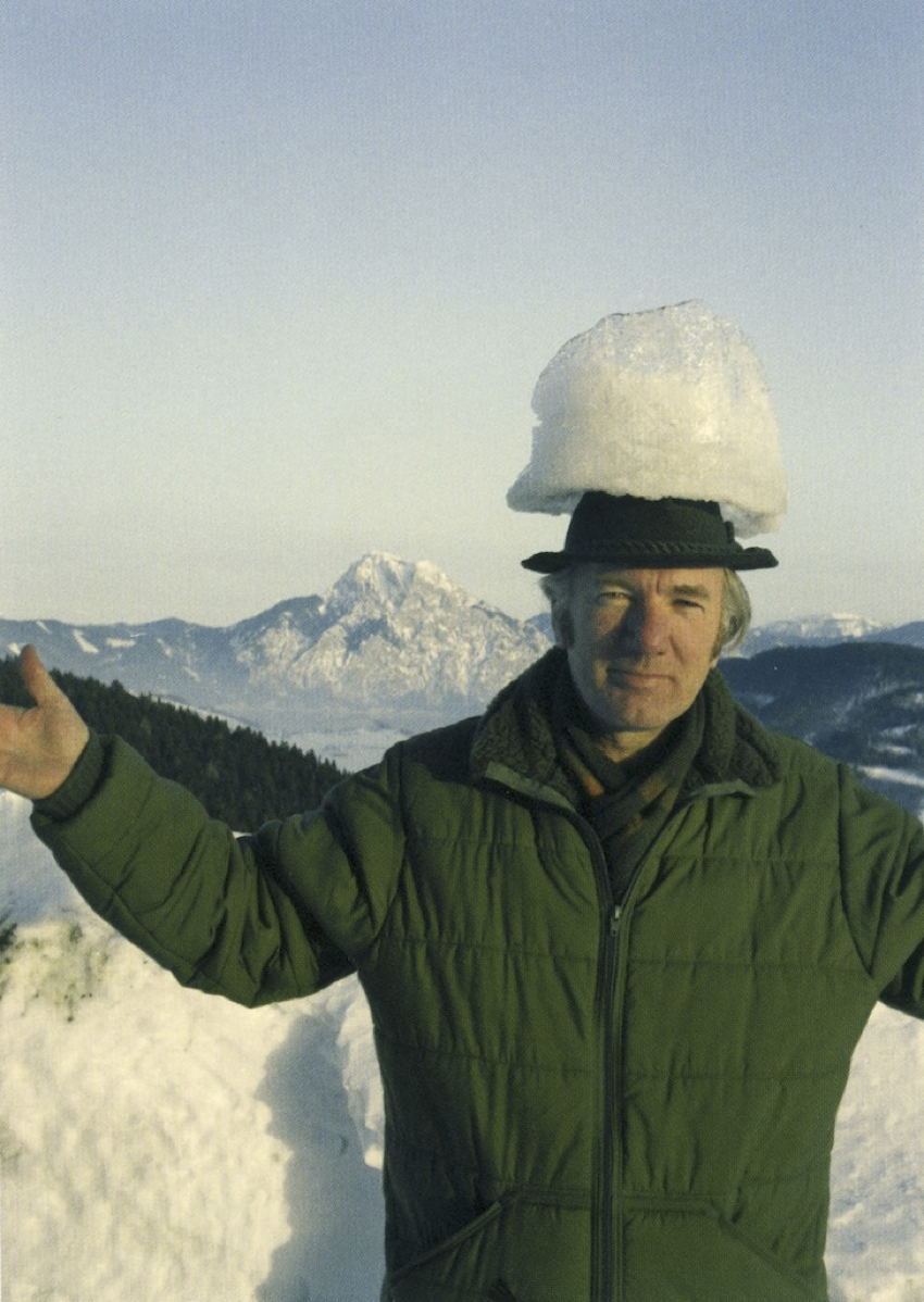 Thomas Bernhard bei den O'Donells in Hochkreut, im Hintergrund der Traunstein, OÖ